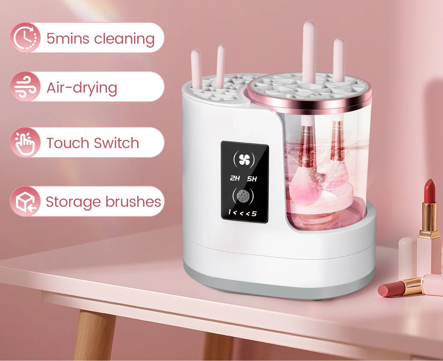 Experience the joy of makeup with clean, dry brushes. This device refreshes your routine, ensuring hygiene and perfect application.